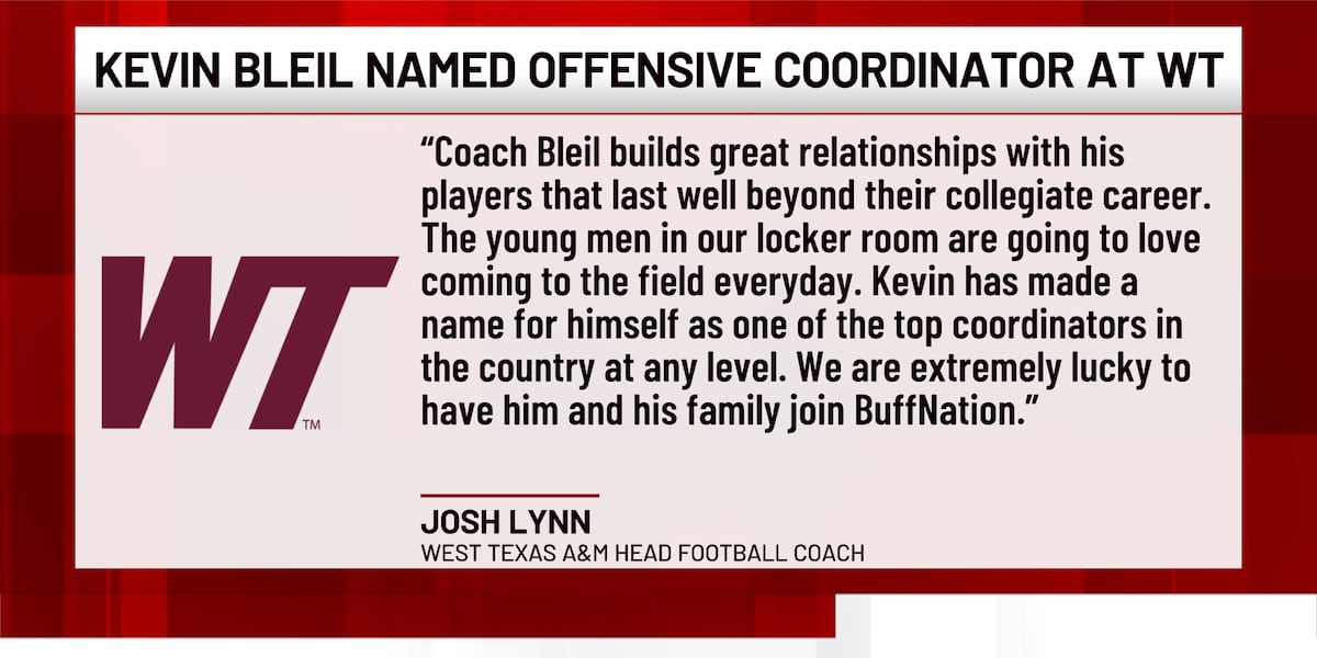 West Texas A&M has named Kevin Bleil as its new offensive coordinator, the university announced today.